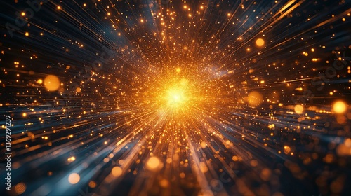 © Areeb, Naklejka premium Glowing Starburst Energy Beams Creating a Radiant Light Effect in a Dynamic Abstract Digital Background