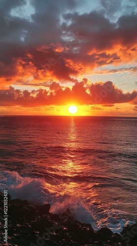 © gen_pick, Obraz premium Glowing Sunset Over the Ocean