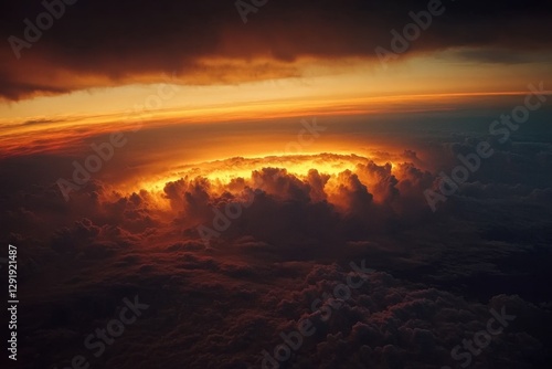 © Atonu, Fototapeta premium Glowing sunset peeking through storm clouds .