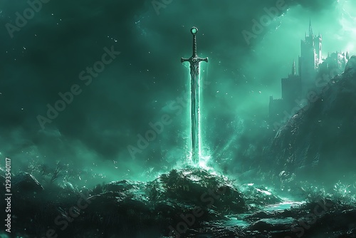 Fototapeta premium Glowing Sword in Dark Fantasy Realm