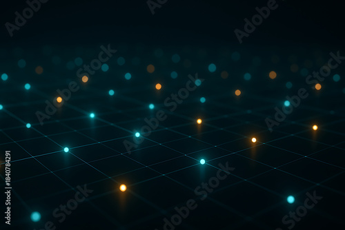 © yh, Fototapeta premium 輝くシナプスドットと未来グリッド|Glowing Synapse Dots on Futuristic Grid