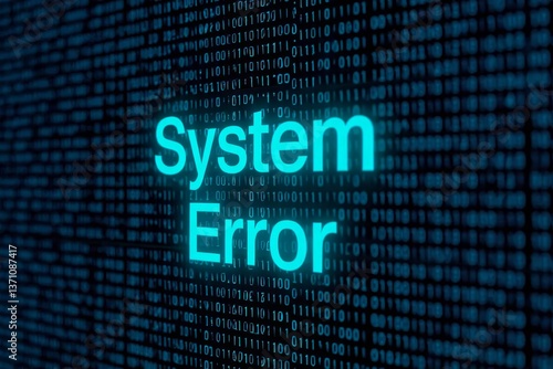 © Hunman, Obraz premium Glowing 'System Error' text with digital data background representing technology problem or computer crash in dark futuristic setting.