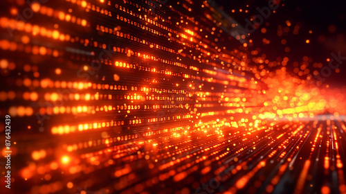 Obraz premium Glowing technology data with digital binary lights forming a pattern of lines...