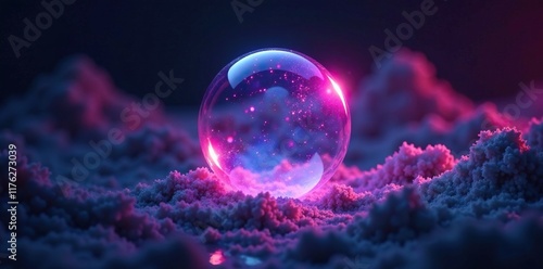© Withun, Obraz premium Glowing translucent bubble in a dark environment, glow, bubble
