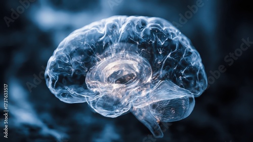 © AnImagine, Obraz premium Glowing Transparent Brain Visualization Demonstrating Neural Networks