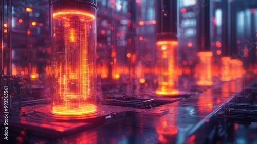 Obraz premium Glowing Tubes in a Futuristic Factory
