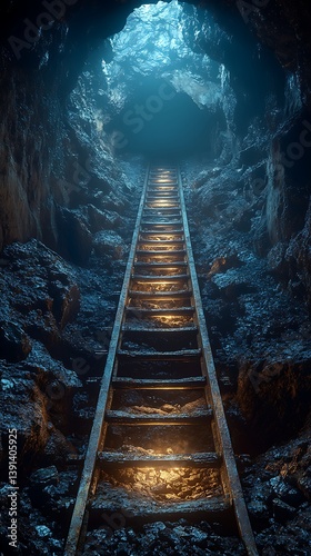 © Joy, Naklejka premium Glowing tunnel railway path adventure scene high resolution picture