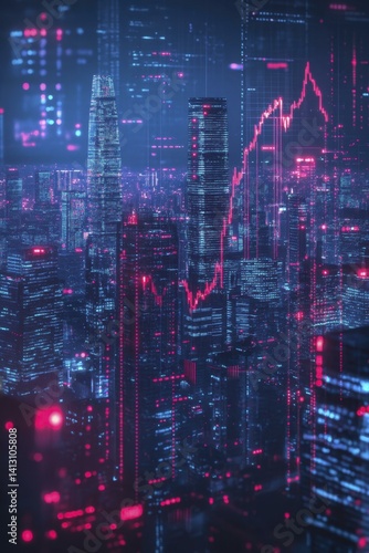 Fototapeta premium Glowing Urban Skyline with Stock Market Decline Chart Overlay