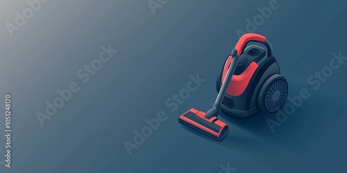 © Cathynew, Fototapeta premium Glowing vacuum cleaner, clean isometric room setting, flat design illustration