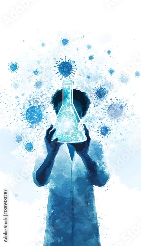 Obraz premium Glowing Virus Research Scientist Illustrates Modern Biotechnology Innovation Aesthetic Concept