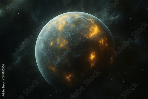 Fototapeta premium Glowing volcanic exoplanet in nebula.
