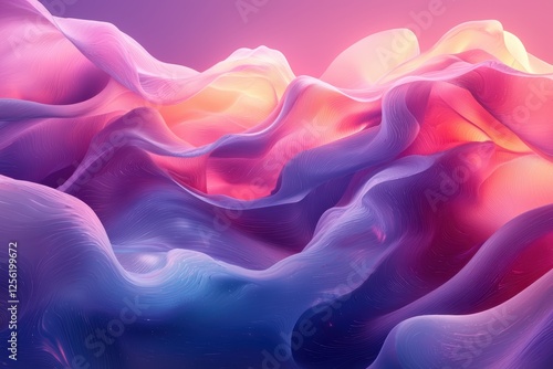 © Somboon, Fototapeta premium Glowing wavelike surface in gradient purples abstract art digital landscape vibrant environment artistic perspective
