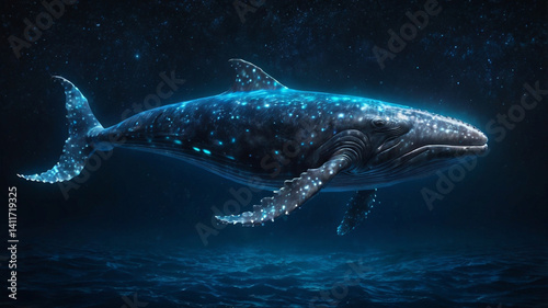 © Yousuf Adnan, Fototapeta premium Glowing Whale Majestic Underwater Creature Ocean Depths Mysterious Marine Life