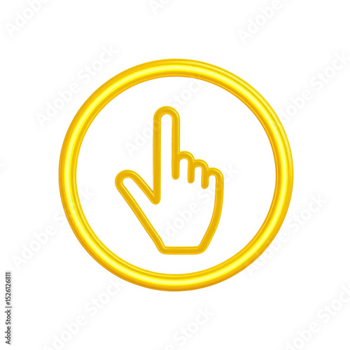 © kobkeroku, Obraz premium Glowing yellow neon hand cursor icon with an extended index finger inside a circular frame on a white background, symbolizing clicking or selection