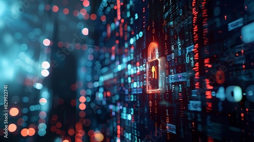 Fototapeta premium Glowing yellow padlock icon over blue circuit board background.