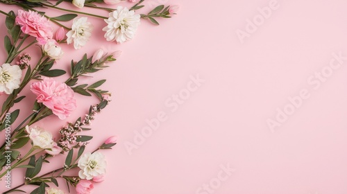 © Nitchalee N., Naklejka premium Gluten free baking ingredients, A beautiful arrangement of pink and white flowers on a soft pink background, creating a delicate and fresh aesthetic.
