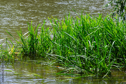 Fototapeta premium Glyceria maxima, commonly known as great manna grass, reed mannagrass, reed sweet-grass, and greater sweet-grass is rhizomatous perennial grasses in mannagrass genus native to Europe