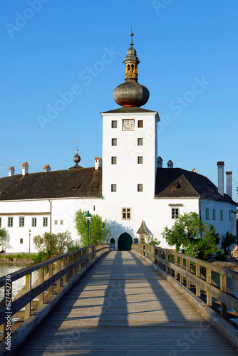 © Rechitan Sorin, Fototapeta premium Gmunden Schloss Ort or Schloss Orth in the Traunsee lake in Gmunden city. Schloss Ort is an Austrian castle founded around 1080