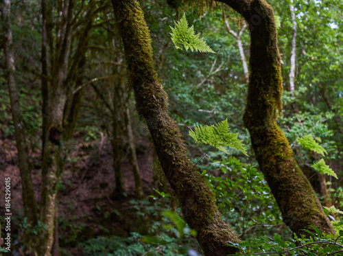 © Xalanx, Obraz premium Gnarled moss-covered laurisilva trees
