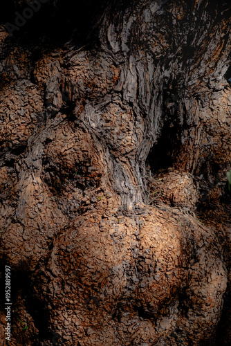 Obraz premium Gnarled tree bark texture with natural knots abstract organic wood background