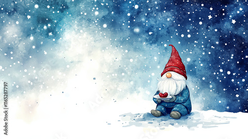 Obraz premium gnome enjoying heart shaped treat in snowy scene