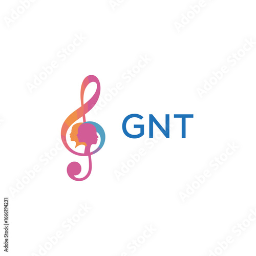 Fototapeta premium GNT “Creative music logo with human silhouettes and treble clef in gradient colors, GNT Later Logo, modern artistic design isolated on white background”