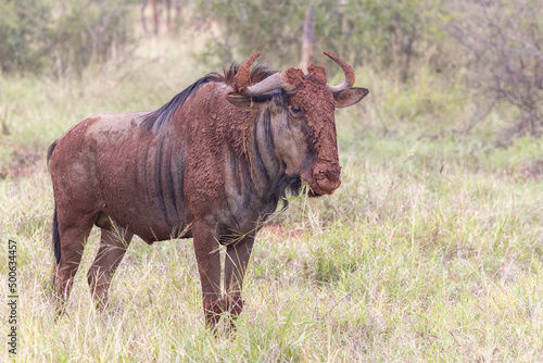 © biamiti, Fototapeta premium Gnu mit Schlamm, wildebeest with mud