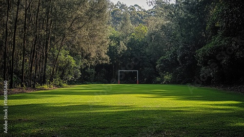 © Badass Prodigy, Fototapeta premium Goal posts on a rugby pitch surrounded by trees