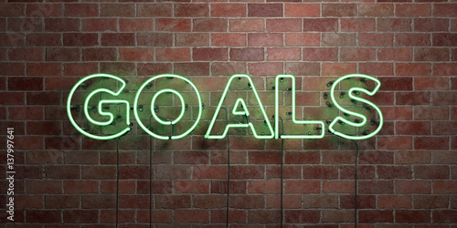 © Chris Titze Imaging, Obraz premium GOALS - fluorescent Neon tube Sign on brickwork - Front view - 3D rendered royalty free stock picture. Can be used for online banner ads and direct mailers..