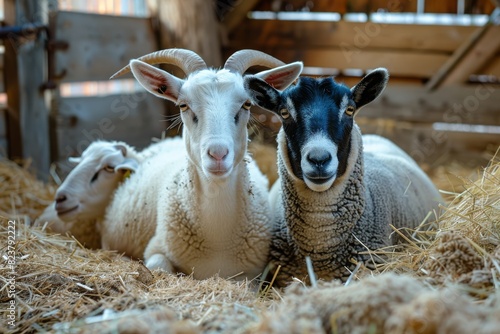 © Tasneem, Naklejka premium goat and sheep in farmyard