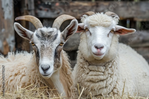 © Tasneem, Fototapeta premium goat and sheep in farmyard