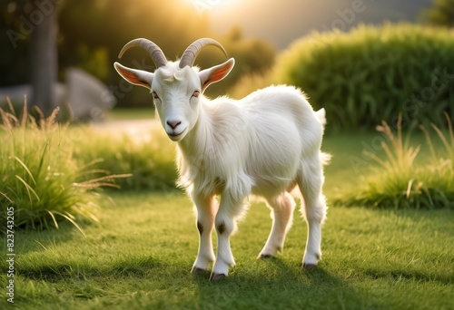 © Mdesigns, Fototapeta premium Goat and sheep under realistic light eating grass for islamic festival edi al adha