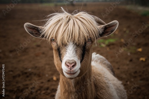 Fototapeta premium Goat Featuring Extended Hair Over Its Forehead