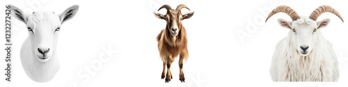 © Sawera, Fototapeta premium Goat front view isolated on transparent background, PNG, Set of