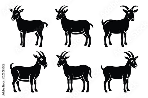 © Nezamur, Fototapeta premium Goat Icon silhouette set vector illustration design. Goat Icon set with white background