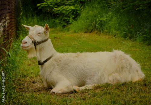 Obraz premium Goat in the spring pasture.