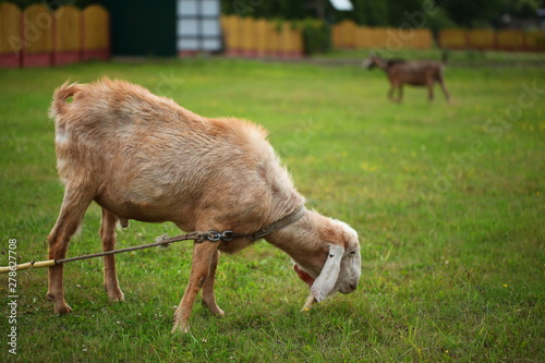 Fototapeta premium goat on green grass