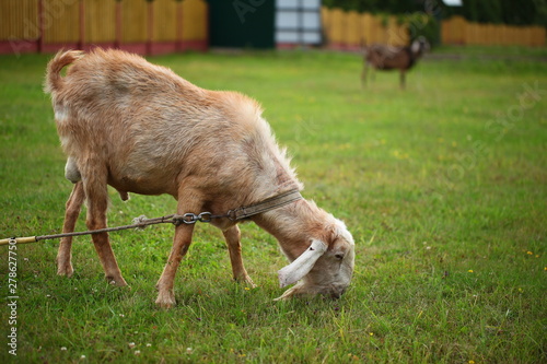 Fototapeta premium goat on green grass