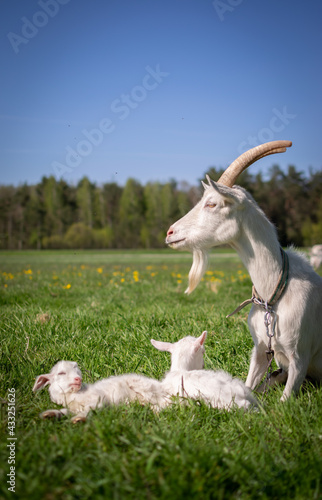 © Tatsiana, Obraz premium goat on the meadow