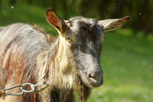 © Vitaly Zubrytsky, Fototapeta premium Goat's portrait close-up with green nature background