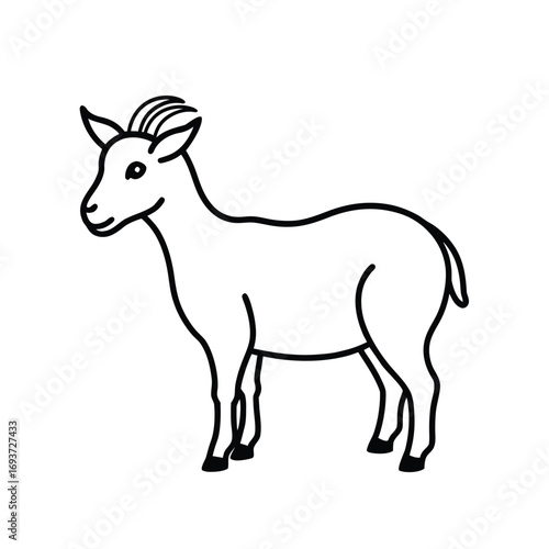 © graphicgenius1995, Fototapeta premium Goat with curved horn outline drawing
