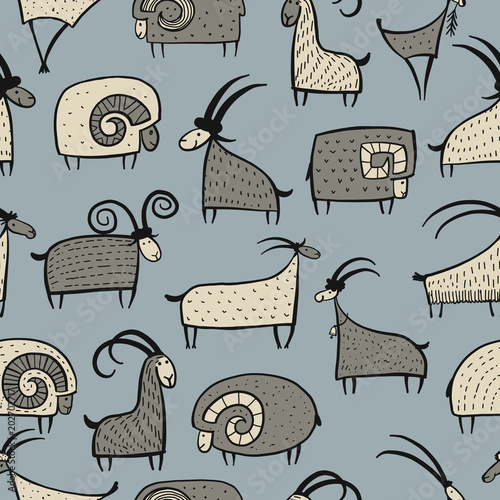 © Kudryashka, Naklejka premium Goats and rams, seamless pattern for your design