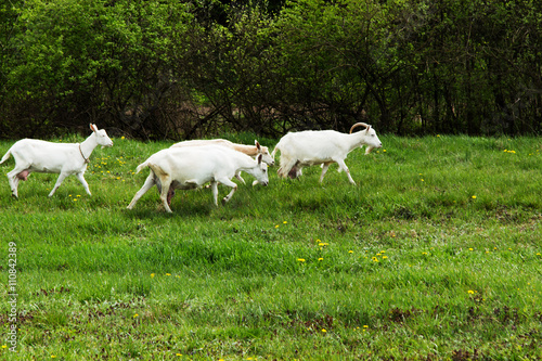 Fototapeta premium Goats are grazed in a meadow