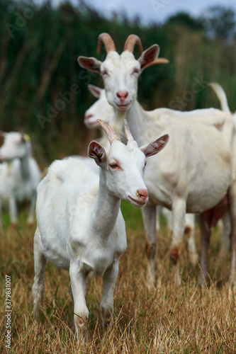 Obraz premium Goats graze on the field