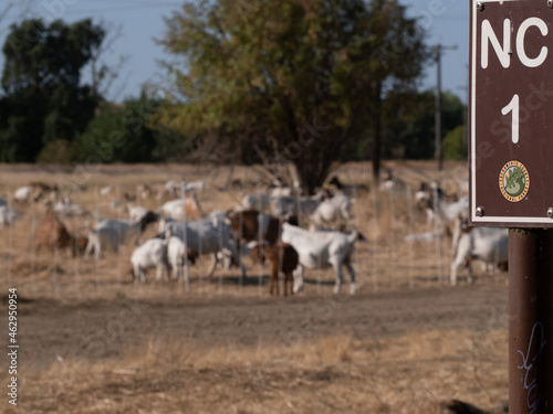 Obraz premium Goats helping with fire prevention American River Parkway Sacramento Ca