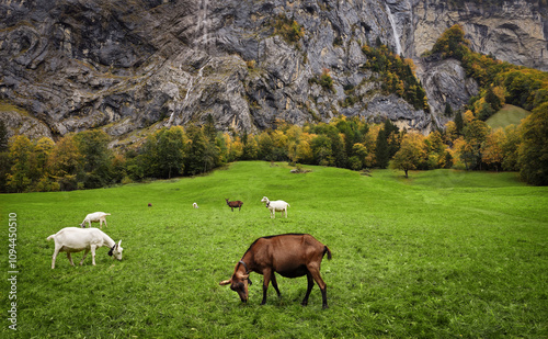 © Alla, Fototapeta premium Goats in Alpine Meadow