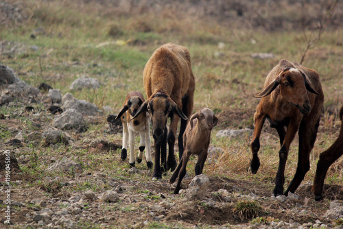 © Apple Stock 963, Fototapeta premium goats on road beside farm land
