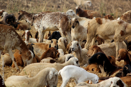 © Apple Stock 963, Fototapeta premium goats on road beside farm land