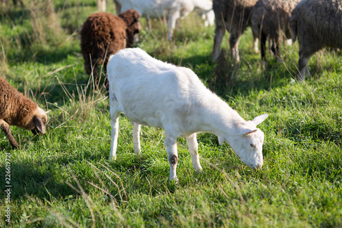 © Evgenia Tiplyashina, Obraz premium goats on the field