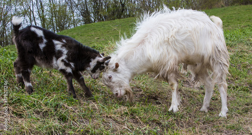 © Vasyl, Fototapeta premium goats playing on the green grass